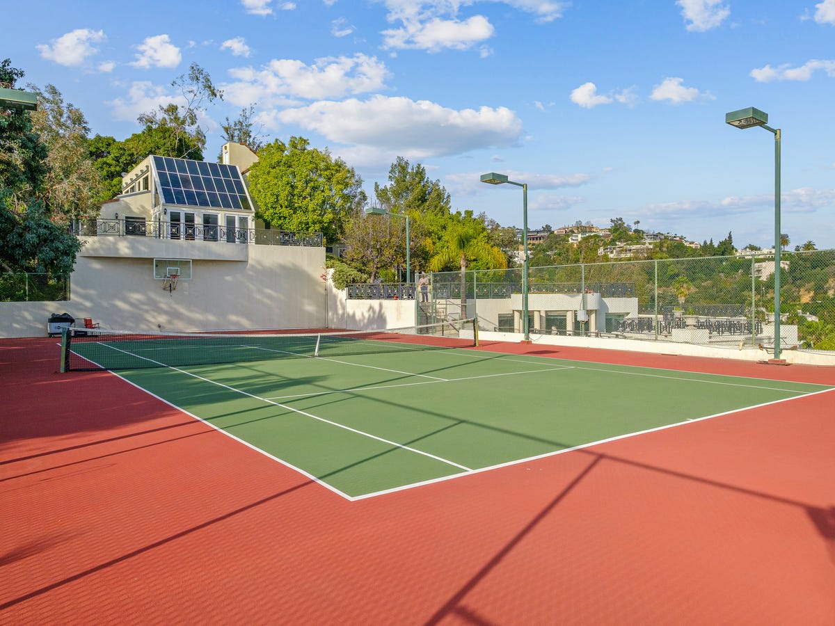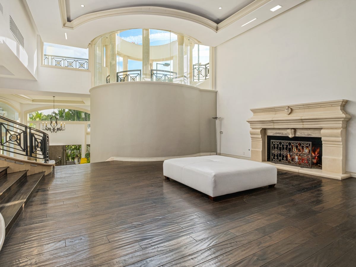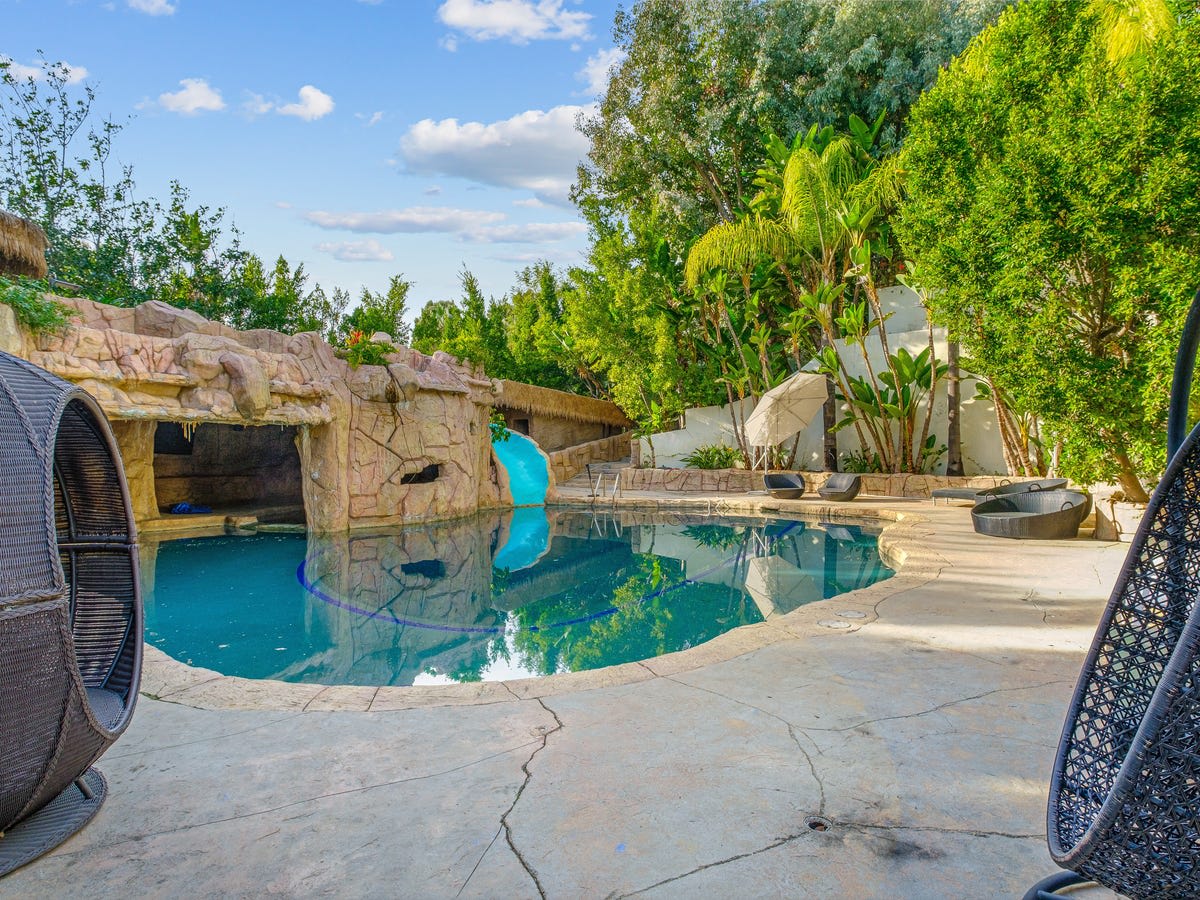 Today, the home is dated in style but in good condition. The property is also a potential development opportunity since it includes so much vacant land, said Mr. Oppenheim. "You could restore the existing property and add an additional significant property," he added. There is long gated driveway, a ballroom with a stripper pole, a wine room, a tennis court, a gym and a four-car garage. The pool has a swim up bar and grotto. The smaller home has a bar and billiard room and a two-car garage.