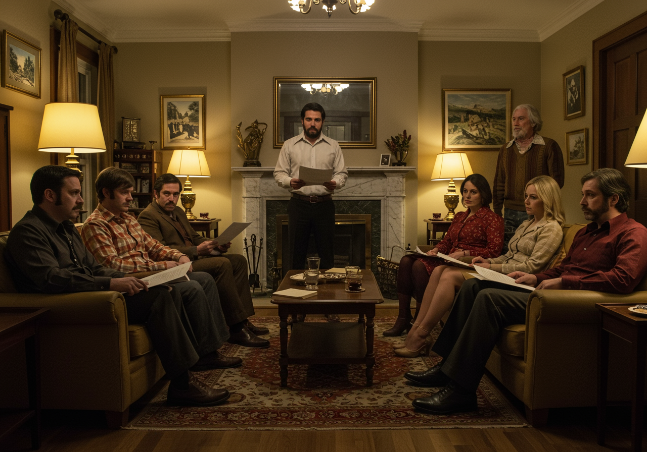 The majority of the filming took place by the fireplace in the den, around the existing furniture of the owners, and in the garden. The production replaced the couple’s art and personal photos with older photos and artwork from the 1980’s.