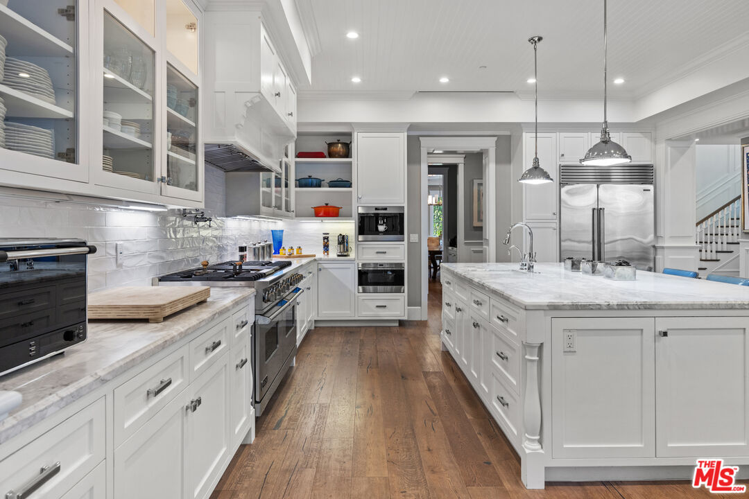 Furnished & Turn Key, Step into unparalleled luxury with this exquisite Cape Cod masterpiece, gracefully situated on a charming corner lot South of the Boulevard. Spanning over 5,300 square feet of sheer opulence, this home flawlessly integrates classic architectural beauty with cutting-edge amenities. It features 5 sumptuous bedrooms, including a lavish Primary Suite, an exclusive media room, a wine cellar, and 5.5 elegantly appointed baths. (Currently their is a room used as a full gym, and one for Pilatees, and one for Office. From the stately entrance with soaring ceilings and meticulous craftsmanship to the gourmet chef's kitchen outfitted with Viking appliances and a grand Calcutta marble island, every element is crafted for sophistication and comfort. The expansive living room, featuring custom built-ins and a fireplace, along with the luxurious Primary Suite boasting private balconies and a marble-clad bath, offer tranquil escapes. Details like engineered oak flooring, elegant wainscoting, LED lighting, and a Control 4 smart system enhance modern living. The outdoor sanctuary includes a zero-edge infinity saltwater pool and spa, a stylish deck, an outdoor BBQ, and a fireplace, ideal for entertaining or serene evenings under the stars. Just minutes from the premier shops and restaurants on Ventura Boulevard, this distinguished furnished residence embodies the pinnacle of California living. Short term rentals offered at rates price depend upon request.