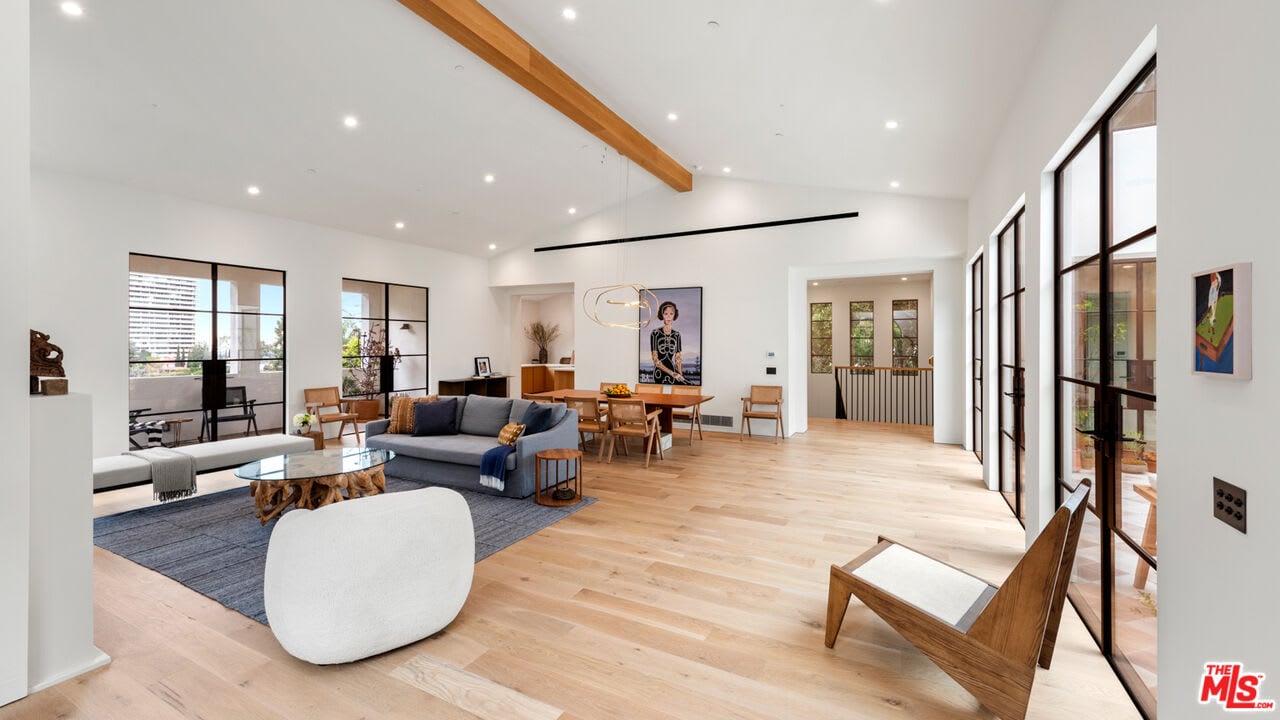 Privately nestled in the coveted Bird Streets, this Italian inspired villa maintains the charm of a 1930s home, yet newly constructed with high-quality, organic materials. Set behind a gate and high hedges, this home, built by the renowned Novogratz design team, is a private and serene oasis. With natural light flowing through the large windows and doors, enjoy views of the city, pool, and verdant landscaping. A dramatic entryway with a bright and airy courtyard lined with Encaustic tile by Cle. leads to the impressive great room with a stunning fireplace. Highlights include high, pitched ceilings with exposed beams, Venetian plaster, Parisian and antique light fixtures, limestone counters, custom millwork, and white oak materials. Top of the line kitchen is fit for the best chef, with a Le Cornue range and Sub-Zero refrigerator finished with wood and stone accents. The owner's suite showcases some of the best views in the house and a custom spa, soaking tub, and private patio. Four additional en-suite bedrooms are generous in size and filled with light. From the entertainment space downstairs, steel case doors flow into the backyard with a sparkling pool and spa adjacent to the pool house and bar finished with beautiful Calacutta Viola countertop. This designer home is the epitome of luxury living in the famed Hollywood Hills.
