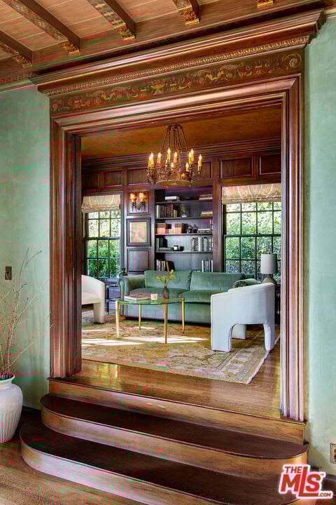 Over the course of its illustrious history, the Blair Estate has maintained its status as one of the most legendary estates in Hollywood. Completely hidden from the street, a long, gated driveway leads to a sprawling 1+ acre park-like haven. Originally built in 1924 by George H. Fruehling for the renowned developer John H. Blair, this masterful estate was crafted to showcase the best of Spanish Mediterranean architecture to a newly developing Los Angeles. Featured in Architectural Digest in 1926, 90 years later on the cover of Anthony Ianacci's book "Hollywood Interiors", and within countless publications in between, the enduring appeal of this timeless estate is undeniable. Extensively remodeled by architect Linda Brettler, who specializes in historic restoration, thoughtful period-appropriate renovations blend seamlessly with the estate's historical details and character. The grand rooms on the main level open up to a magnificent wrap-around patio that merges the indoors with the estate's spectacular grounds. Upstairs, 4 generously proportioned bedrooms include a primary suite with a ~400 sq ft terrace, and offer breathtaking views of the city. Each bathroom boasts custom, hand-made tile work crafted exclusively for the estate, replicating the designs of the 1920s with exquisite attention to detail. Mature trees, a manicured lawn, and meandering pathways are complemented by a pool, grotto, koi pond, and multiple terraces, making this estate a true oasis that feels a world away from its central location in the Hollywood foothills. The lower level of the estate is a veritable playground for entertainment, complete with additional guest bedrooms and bathrooms, a second kitchen, game room, wine room, state-of-the-art theatre, and indoor-outdoor bar and loggia. The estate also features a three-level guest house, currently serving as an expansive office and gym. This is an unparalleled opportunity to own a piece of Hollywood history with scale, privacy, and central location that are rarely seen, and impossible to replicate.